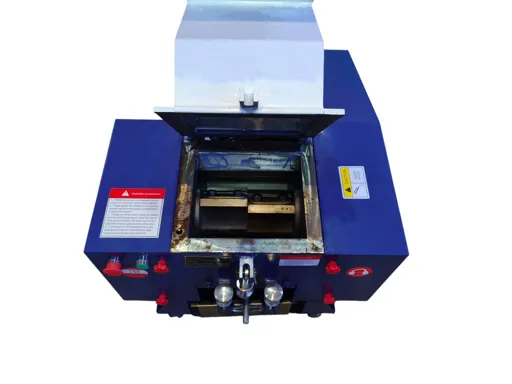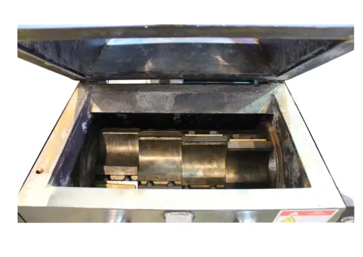 Работа оборудования основана на ударной нагрузке, осуществляемой резаками, которые установлены на вращающемся роторе. Вращение вала обеспечивается с помощью электрического двигателя, соединенного посредством ременной передачи. Для эффективной работы могут быть установлены не только подвижные роторные резаки, но и стационарные ножи на корпусе. Таким образом, зазор между лезвиями остается очень небольшим, а попадая в него, материалы постепенно измельчается. В нижней части станка устанавливается специальное фракционное сито, которое обеспечивает отделение фракции, соответствующей требованиям.